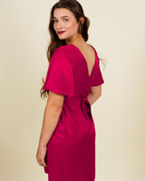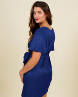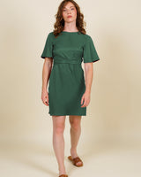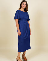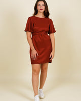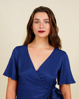 La robe amandine est une robe cache-cœur, convertible en col rond. C'est une robe à manche courte et qui arrive mi cuisse, au dessus des genoux.
